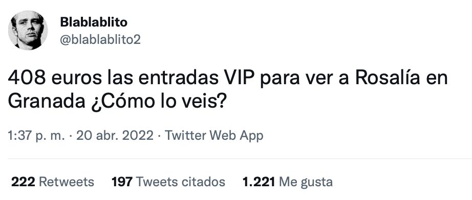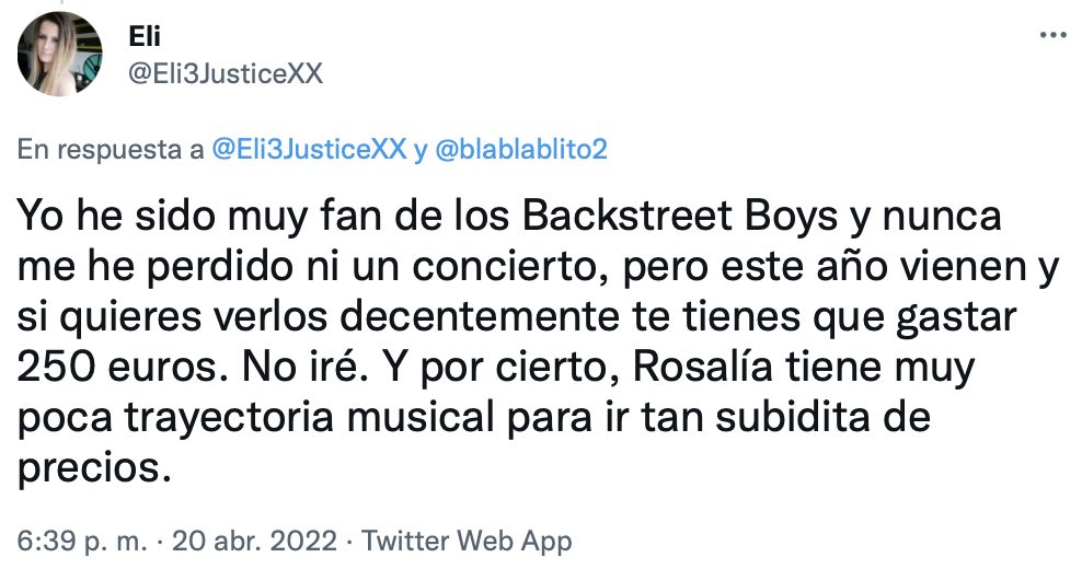 Yo no veo ningún problema. Si hay gente a quién le gusta, why not? Además, es una artista que tenéis en España famosa a nivel mundial. @blablablito2 Bueno, y si no es Rosalía, ¿por quién pagarías? rosalíatwitter No hay comentarios random 21 abril, 2022