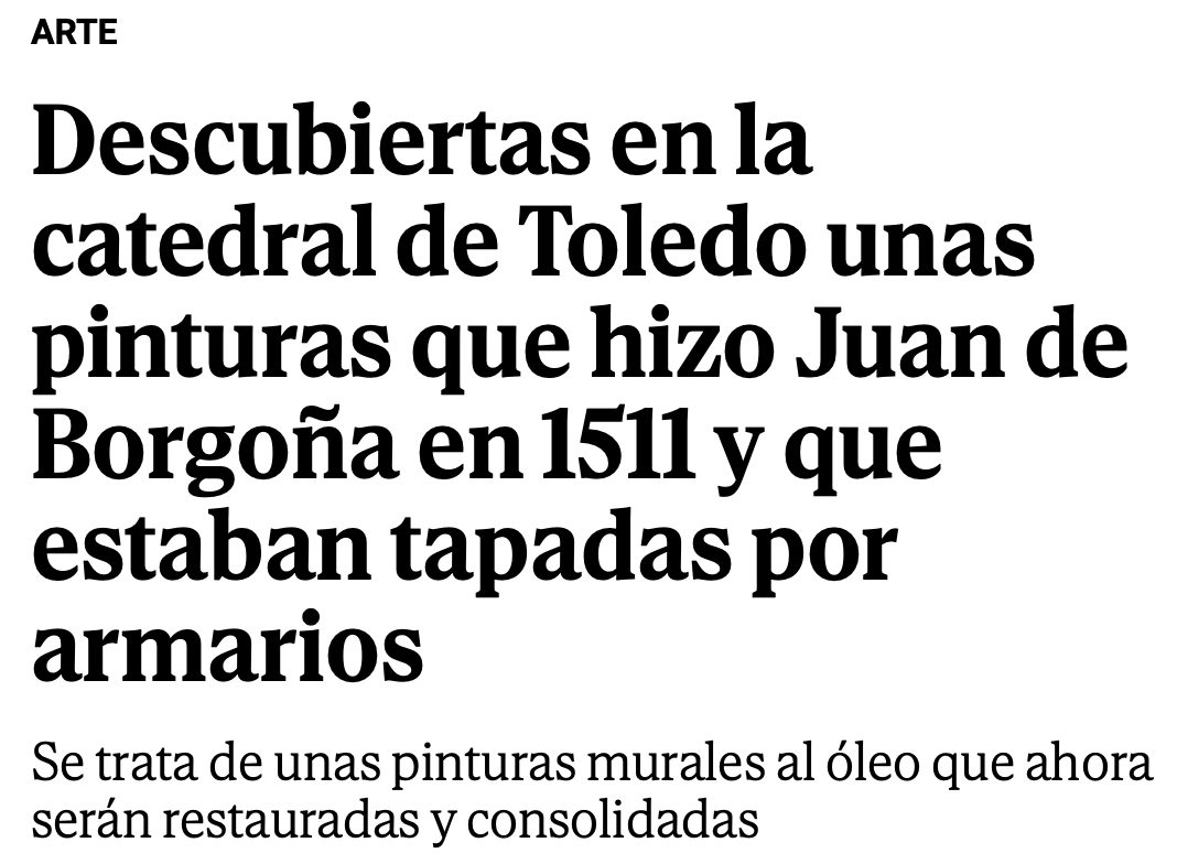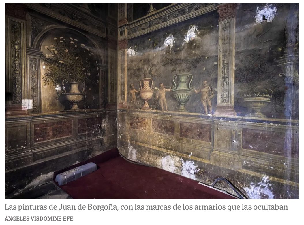Unas pinturas de Juan de Borgoña de 1511 han aparecido en la catedral de Toledo en buen estado después de retirar unos armarios tras los que han permanecido durante dos siglos y medio, y ahora los restauradores se encargarán de su limpieza y consolidación. | @elmundo