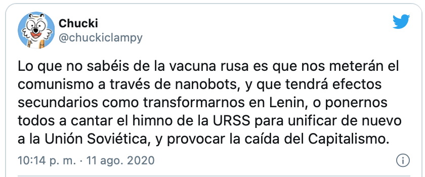 – Pues yo me he puesto la vacuna rusa contra el covid19 y no noto ningún efecto secundario