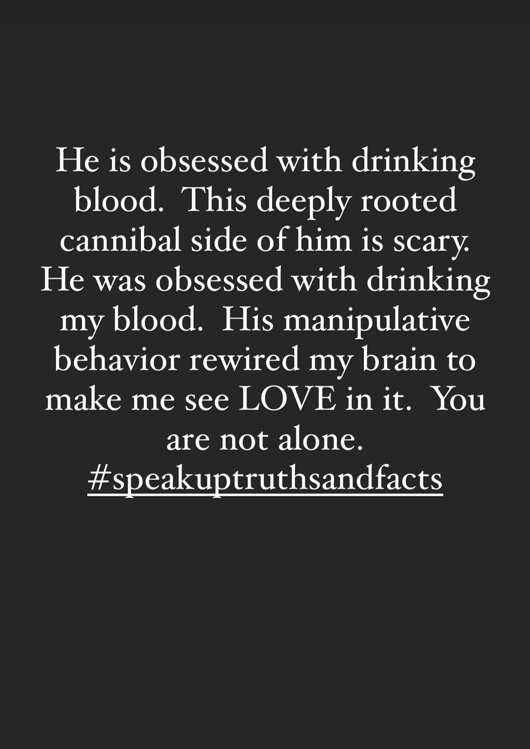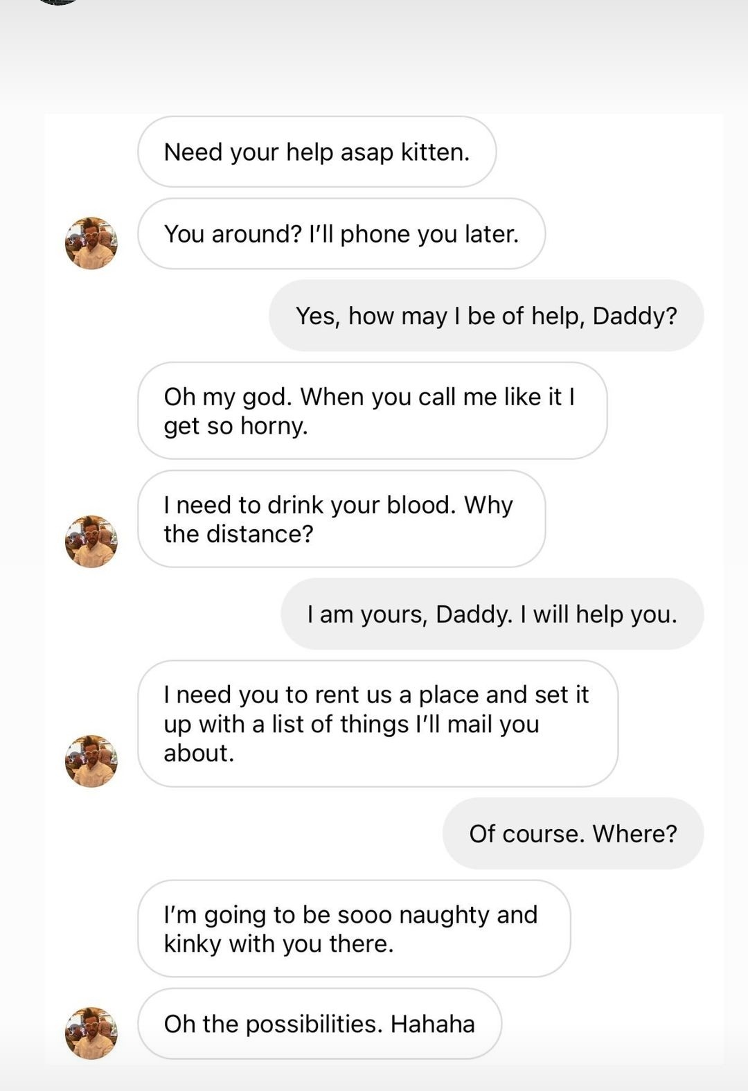 «Escríbeme cosas sobre romper tus huesos mientras te violo«, dice supuestamente en otra captura de Instagram. «Me estoy masturbando mientras pienso en romperte las costillas».