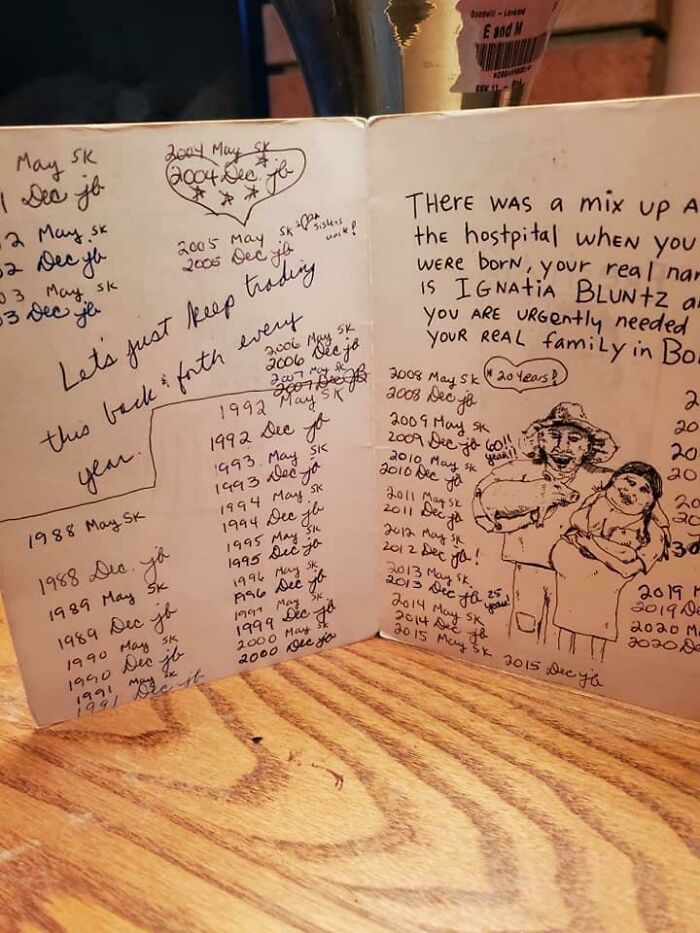 Mi amiga y su hermana han intercambiado la misma tarjeta de cumpleaños durante 32 años