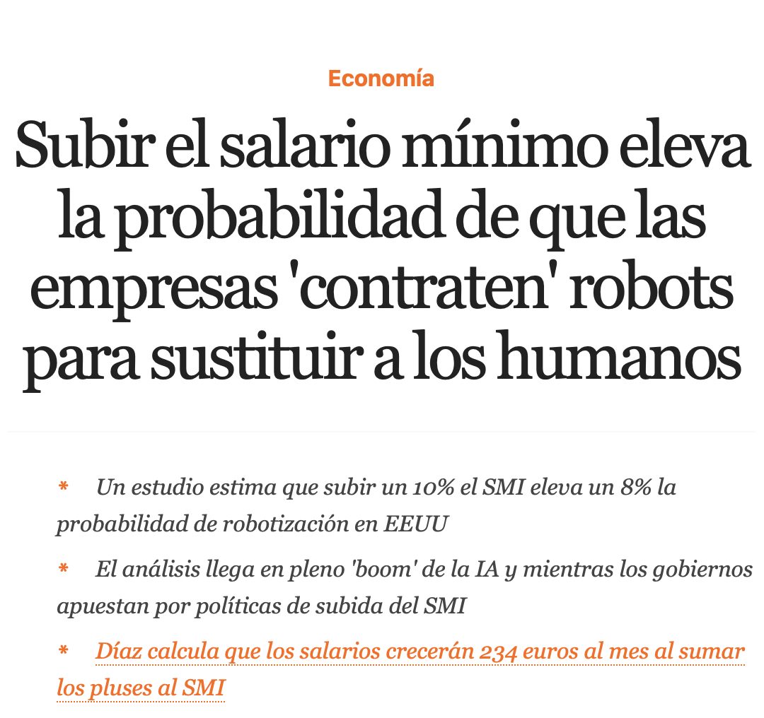 El estudio, firmado por los investigadores Erik Brynjolfsson y Andrew Wang, de la Universidad de Stanford, J. Frank, de la Universidad de Columbia Británica, Javier Miranda, de la Universidad Friedrich Schiller y Robert Seamans, de la Universidad de Nueva York, arroja una contundente conclusión: por cada 10% de subida del salario mínimo se eleva en un 8% la posibilidad de adopción de robots.