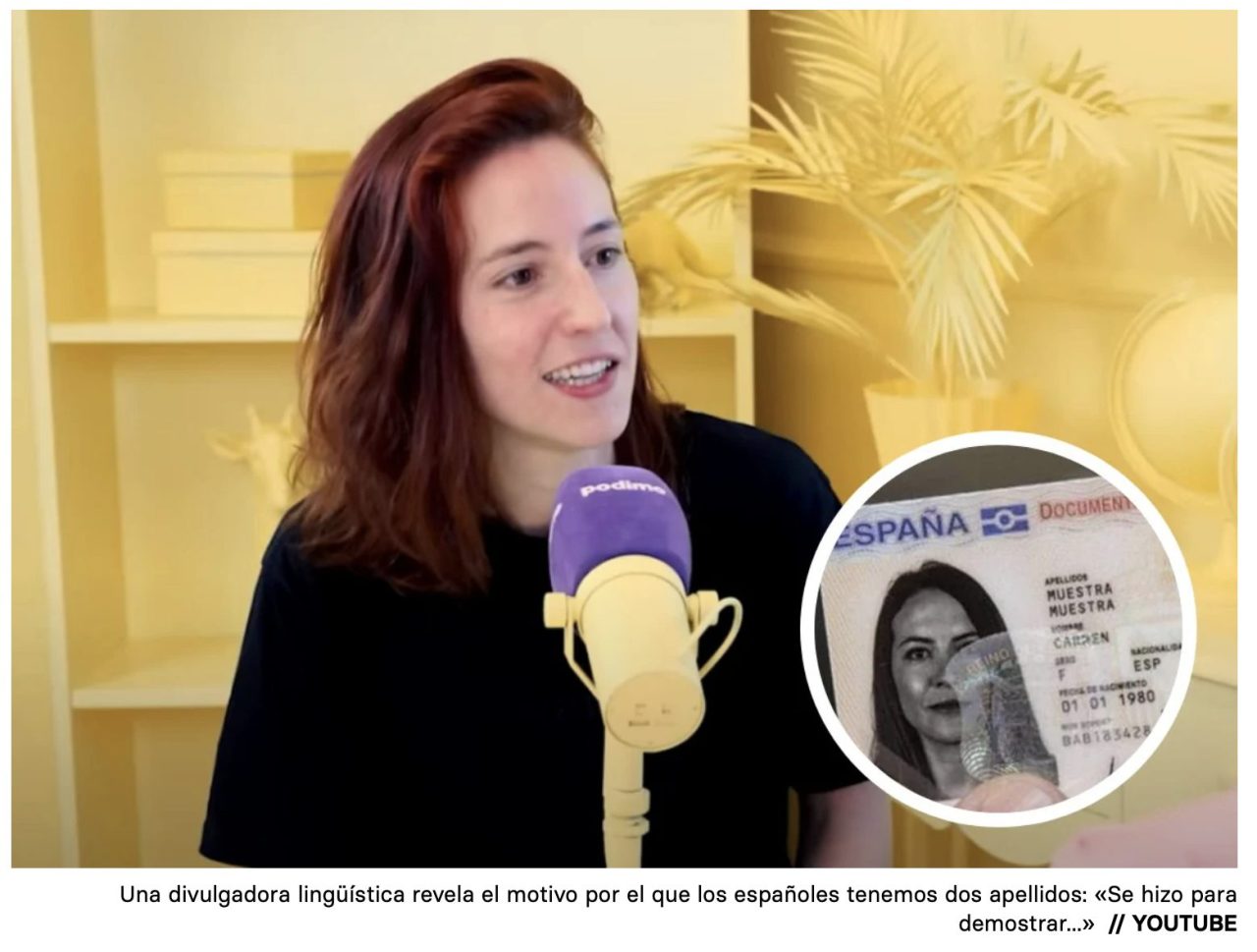 Elena Herraiz ha revelado el motivo por el que en España las personas tienen dos apellidos y no solo uno como en otros países europeos. «Era para demostrar la pureza de sangre», ha afirmado.