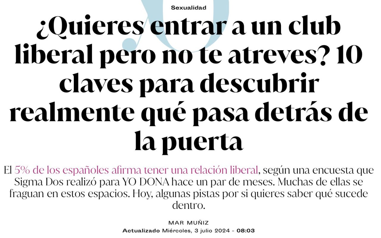 10. Hablando de sexo, ¿qué se hace dentro? En un club liberal lo que más se suele encontrar son parejas que buscan divertirse y experimentar de manera libre su sexualidad junto a otras parejas. Por eso las prácticas más comunes son el intercambio de pareja, los tríos y las orgías. El exhibicionismo es habitual, con sus dos caras: quienes disfrutan practicando sexo mientras los miran y los ‘voyeurs’, los observadores. Otra práctica es el ‘hotwife’, en la que el acuerdo en una pareja consiste en que ella mantenga relaciones sexuales con otro hombre mientras él mira. Si te interesa el sexo de dominación y sumisión (BDSM), seguro que también podrás encontrar fiestas temáticas o eventos específicos.