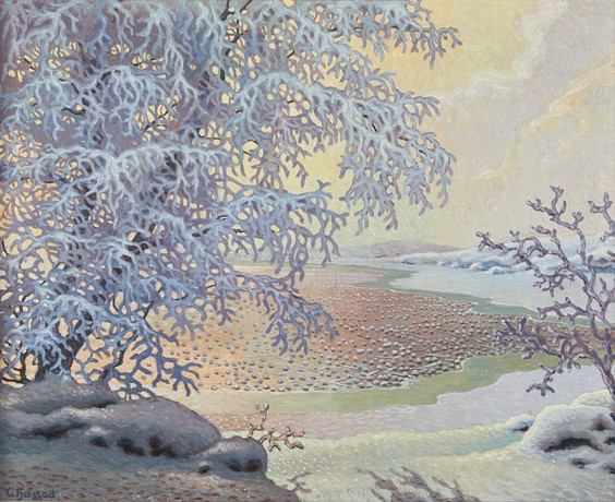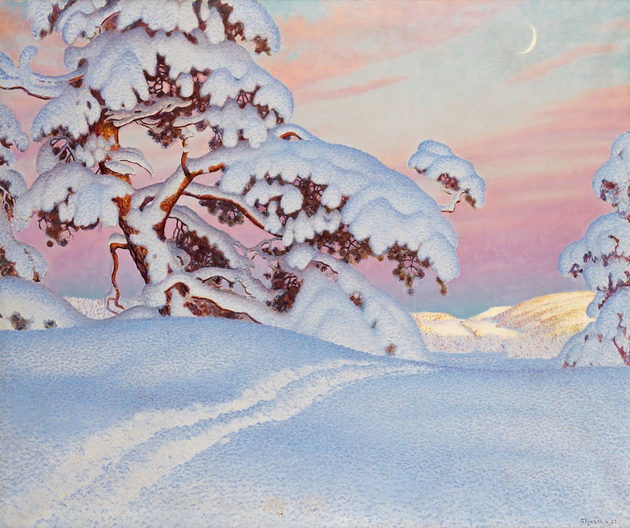 Gustav Fjaestad es uno de los mejores artistas cuando se trata de nieve, logra capturar la textura de la nieve como pocos. Snow – Silence (1914)