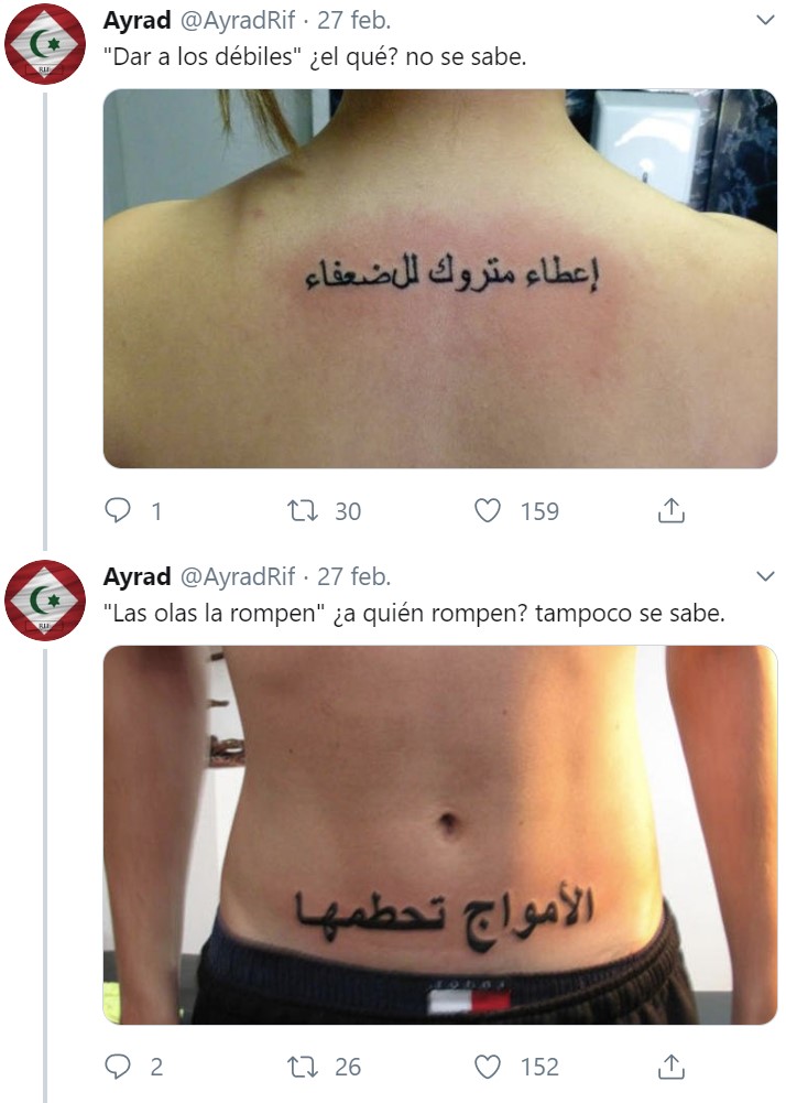 Hilo de tatuajes en árabe que salieron mal. [HILO] árabeBS18failtatuajes No hay comentarios Sin categoría 30 octubre, 2019