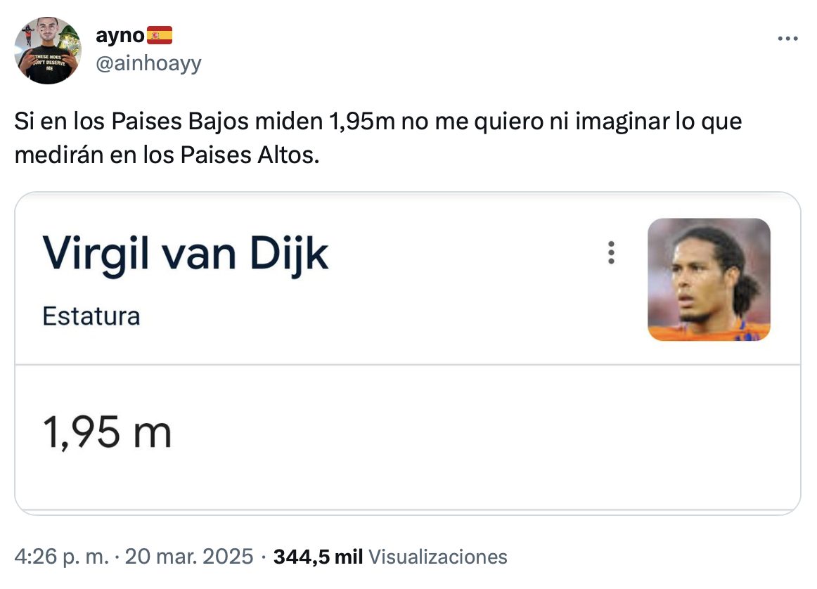 Si en los Países Bajos miden 1,95m no me quiero ni imaginar lo que medirán en los Países Altos. @ainhoayy altoaltospaíses bajos No hay comentarios random 21 marzo, 2025
