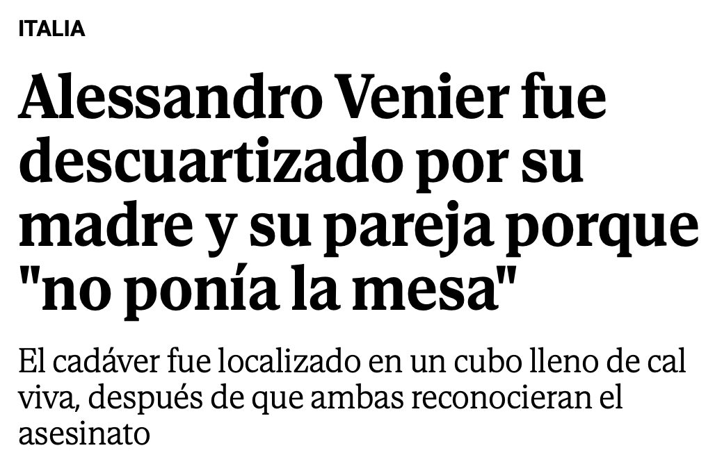 La pareja tenía una niña nacida el pasado mes de enero y que ha sido entregada en acogida. La madre, por su parte, era una conocida enfermera en el hospital de Gemona y su hijo era fruto de una relación que mantuvo con un hombre de origen egipcio, quien no quiso reconocerlo. «Era una mujer afable, con la que teníamos una buena relación de vecindad. A veces nos traía huevos. Nunca oímos discusiones, por eso todo esto es inexplicable», explica Alberto Guillan, un militar que vive con su familia en la casa de enfrente. | @elmundo