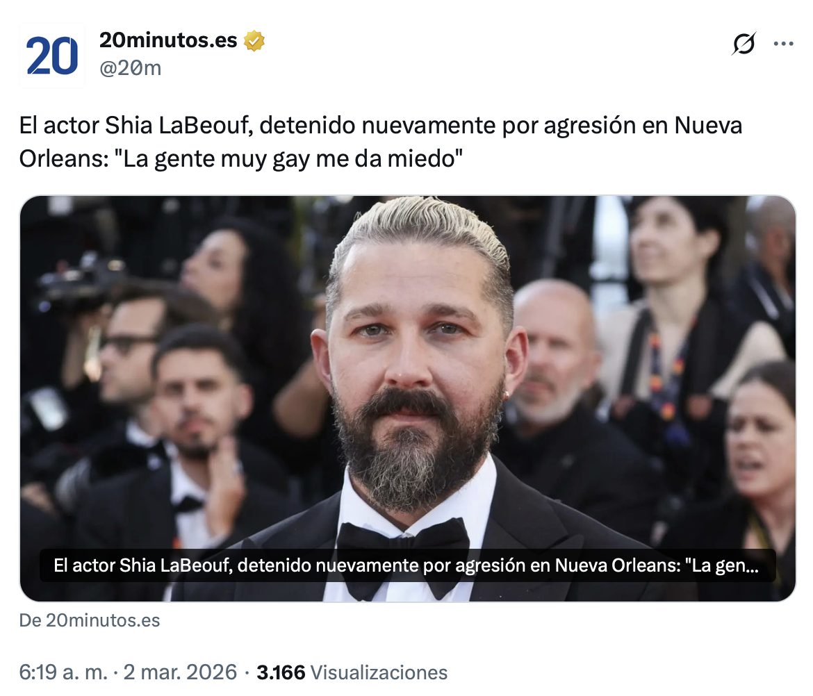 ¿Cómo que la gente muy gay me da miedo? xdxdxd @20m shia labeouf No hay comentarios random 2 marzo, 2026