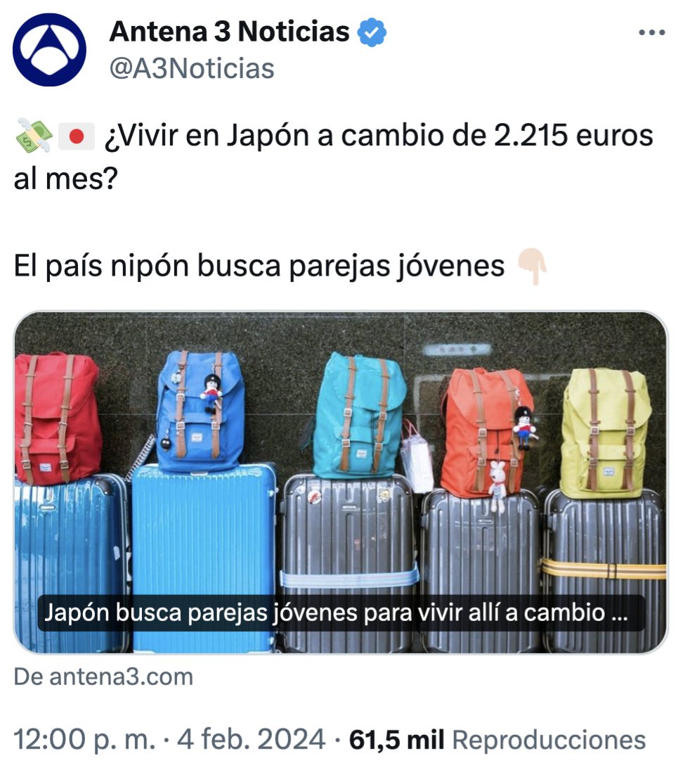 Ni por 5K me voy con esos raritos. Los únicos países a los que me mudaría si me tengo que ir de España serían Italia y Portugal @antena3 japónnoticias No hay comentarios random 4 febrero, 2024