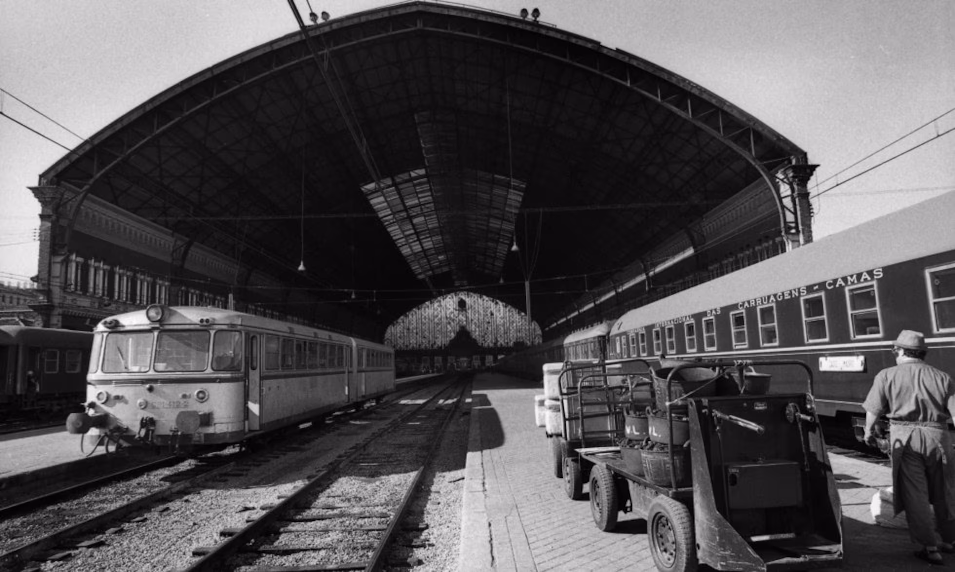 Una mujer aprovecha el viaje en un tren de Cercanías para hacer ganchillo, en junio de 1978.