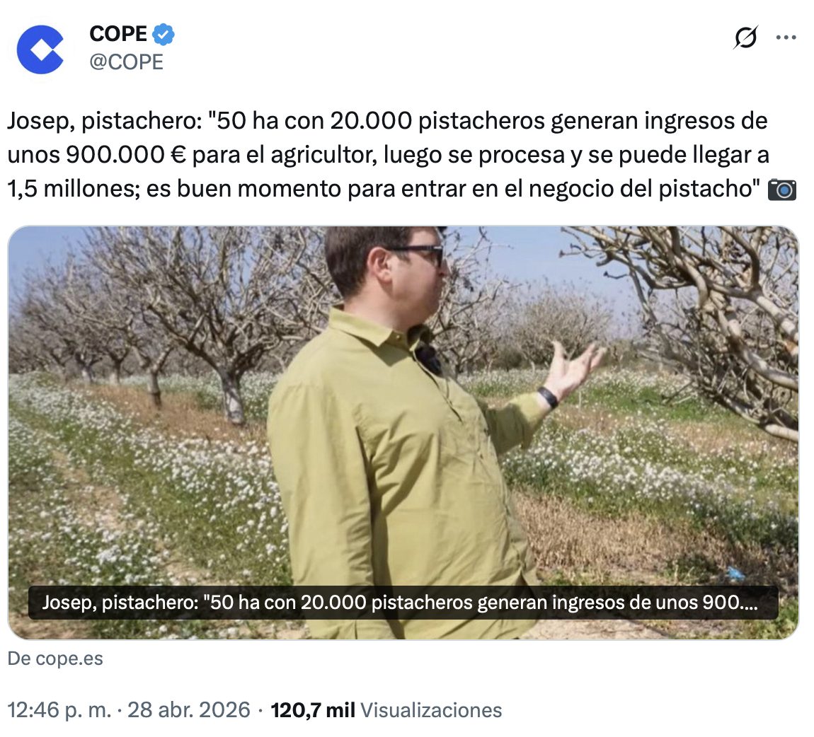 Si no sabes qué hacer con tu vida, puedes plantar pistachos, por ejemplo. noticiaspistachopistachos No hay comentarios random 1 día ago