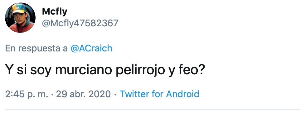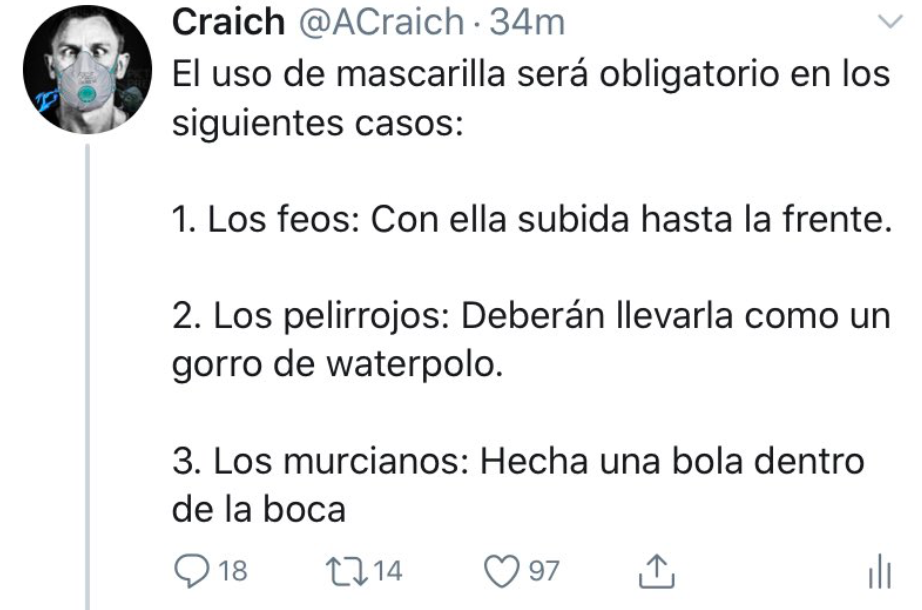 Lo tiene jodido… @Mcfly47582367 BS18feosmascarillamurcianomurcianostwitter No hay comentarios Sin categoría 29 abril, 2020