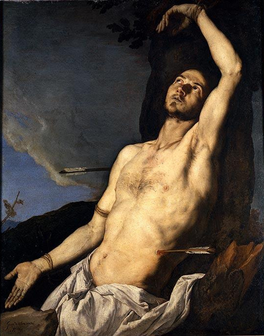 Las santas se inclinan sobre el santo Sebastián
