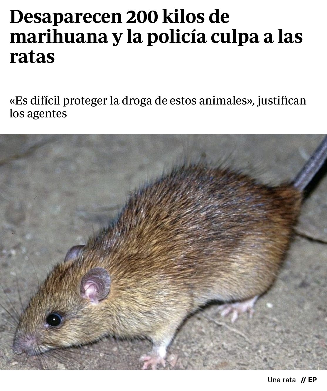 No es la primera vez que las ratas son señaladas por hacer desaparecer droga. En 2018, unos policías de Buenos Aires fueron juzgados después de que se perdieran 540 kilos de marihuana y, como en el caso de sus colegas indios ahora, también argumentaron que se las habían comido las ratas. | @abc