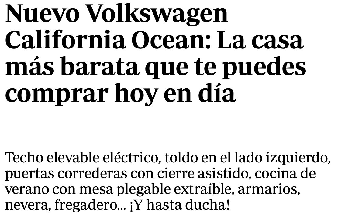 Comprarse un piso o una casa en la actualidad es una tarea complicada y para bolsillos sin fisuras. Y aunque no sea la mejor solución, Volkswagen ha creado una casa sobre ruedas, que puede ser un buen refugio para escapadas de fin de semana e incluso para intrépidos que se atrevan a pasar varios días perdidos en la montaña o la playa. Con una entrada de 10.000 euros, a través de VW MyRenting, se puede comprar una California T7 2.0 TDI por 48 cuotas de 320 euros al mes (sin IVA).