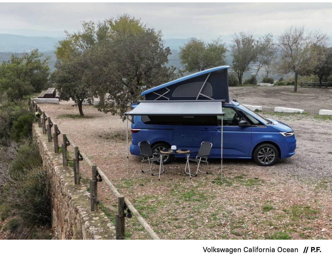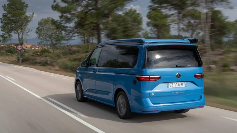 La gama del nuevo California está compuesta por cuatro acabados: Beach, Beach Tour, Beach Camper y Ocean. La primera opción ofrece seis plazas en configuración 2+2+2 en asientos individuales y espacio para que duerman dos personas bajo el techo elevable, que puede abrirse y cerrarse manualmente con un nuevo mecanismo de fácil accionamiento. La cama elevada del techo mide 2.054 x 1.137 mm en todos los modelos del nuevo California y está equipado con un cómodo colchón y muelles de alta calidad. También cuenta con un sistema de oscurecimiento con cortinas con capuchas y magnéticas, además de un climatizador de tres zonas con panel adicional en el habitáculo.