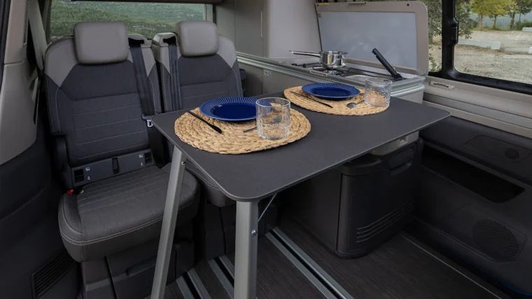 Al igual que la variante Beach Tour, la Camper tiene cinco plazas. Incluye una minicocina con un hornillo de gas de un solo anillo, cajón para cubiertos y espacio de almacenamiento adicional (se integra en un módulo instalado de forma fija en el compartimento de carga). Para utilizarla, el módulo de cocina se extrae hacia la parte trasera cuando la tapa del maletero está abierta, lo que también protege de la lluvia y evita humos dentro del vehículo.