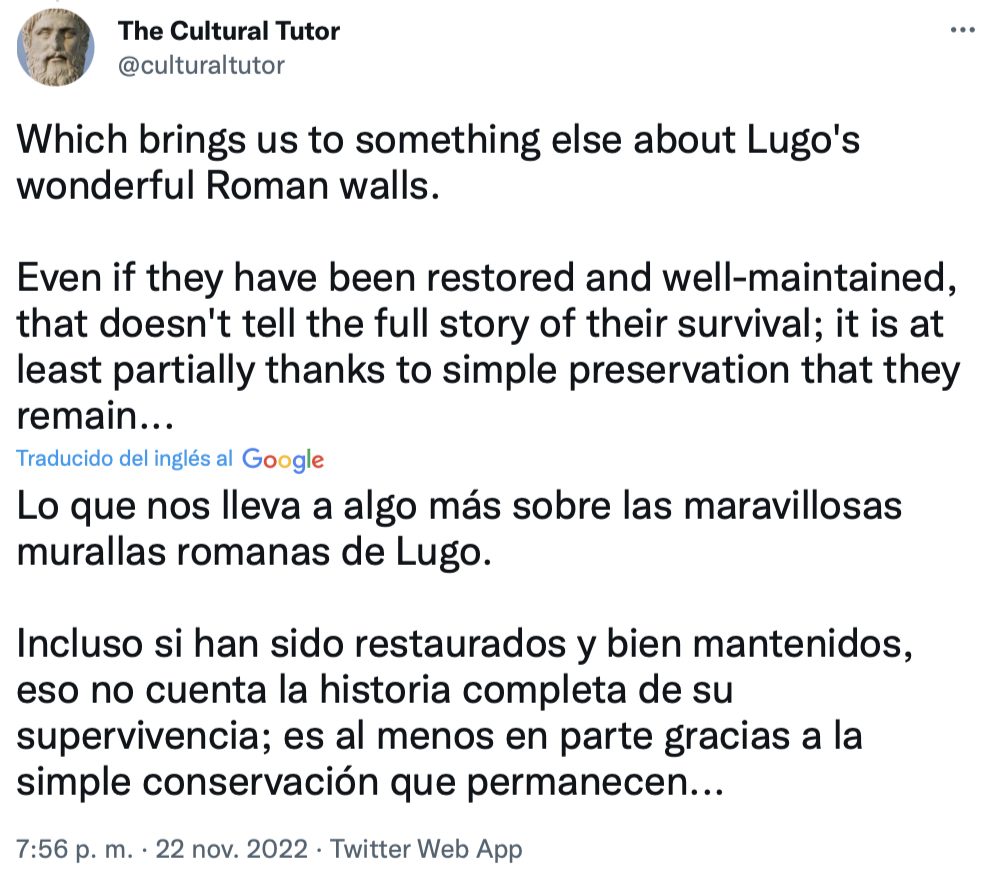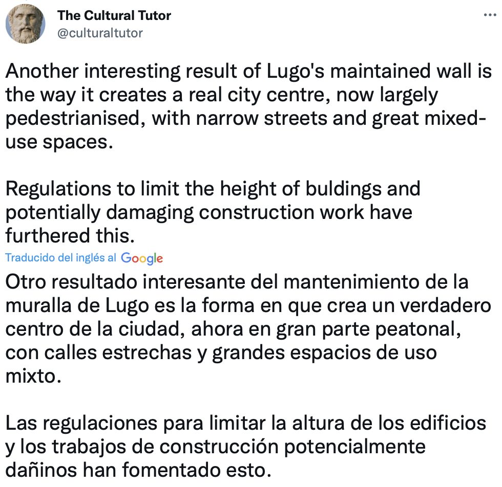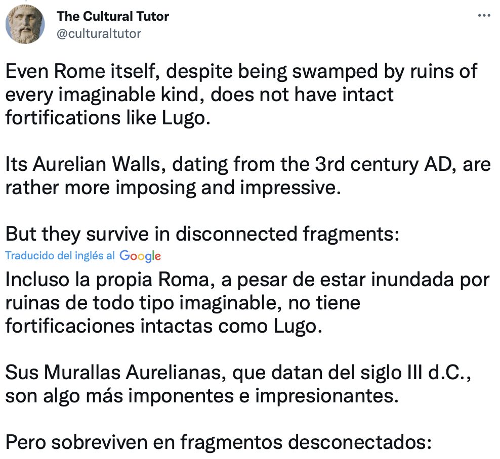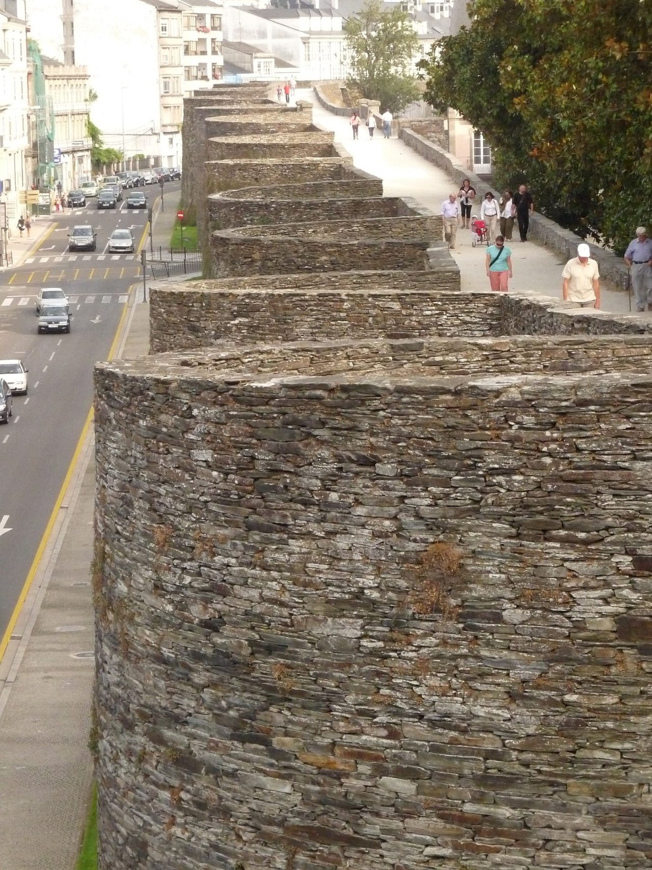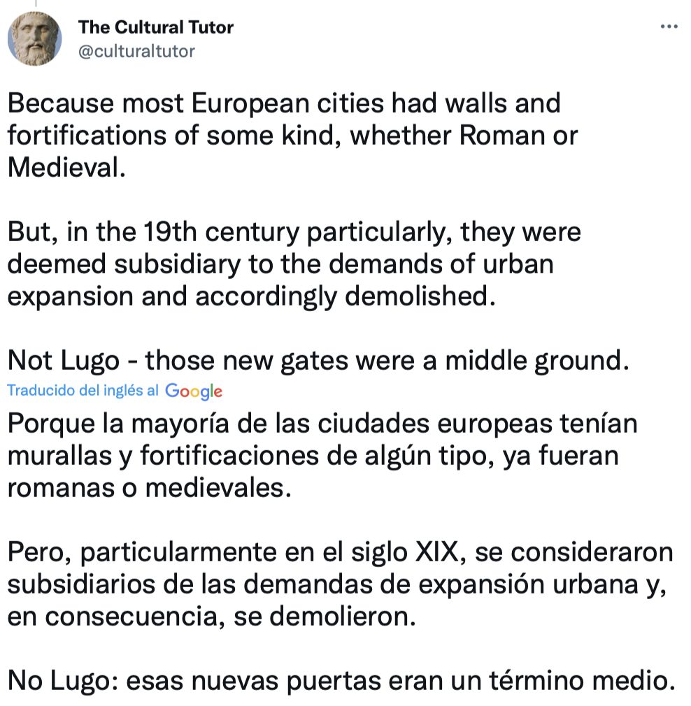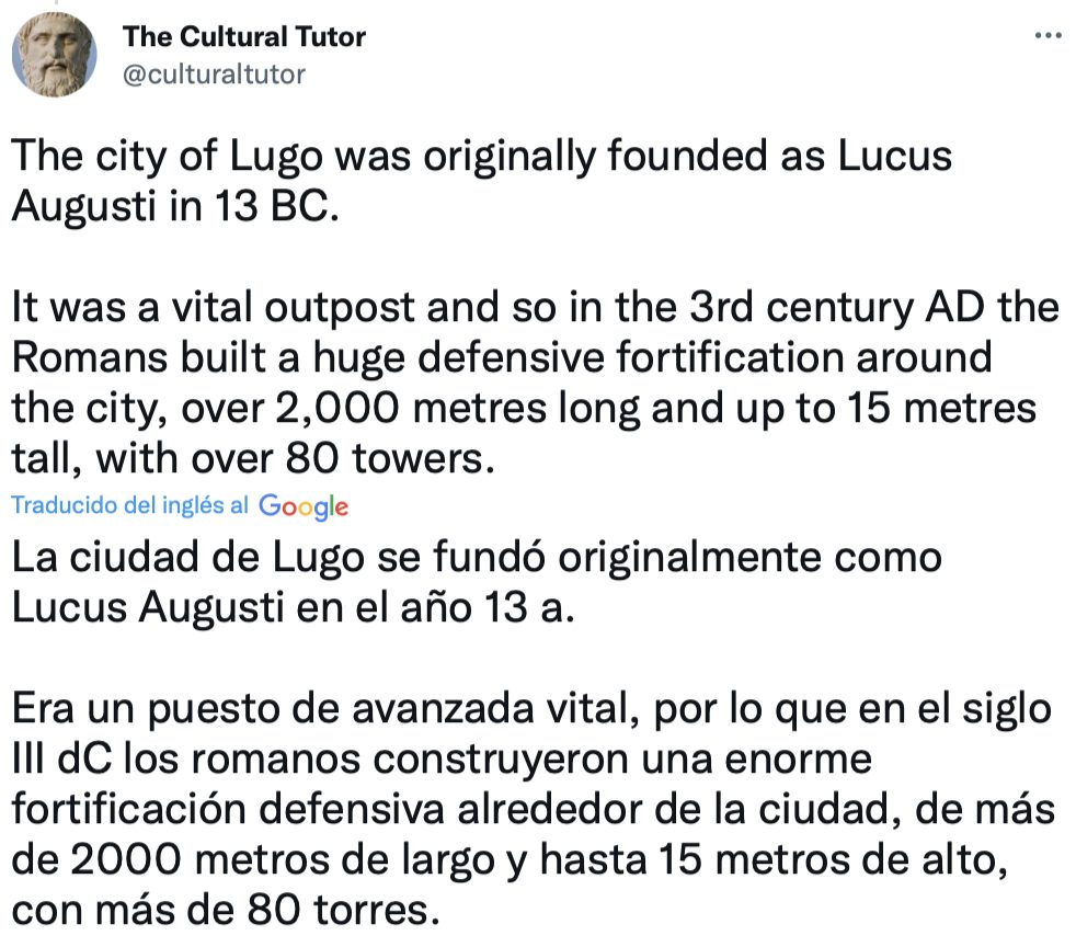 Es el único lugar en el mundo que tiene un conjunto completo de murallas romanas intactas. Se construyeron hace 2.000 años y rodean todo el casco antiguo. Pero, ¿cómo sobrevivieron? Ahí es donde se pone interesante… La ciudad de Lugo se fundó originalmente como Lucus Augusti en el año 13 a. Era un puesto de avanzada vital, por lo que en el siglo III dC los romanos construyeron una enorme fortificación defensiva alrededor de la ciudad, de más de 2000 metros de largo y hasta 15 metros de alto, con más de 80 torres.