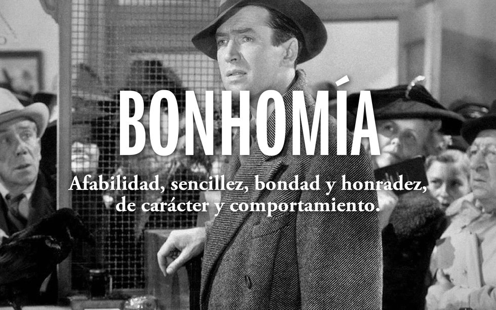 Es una adquisición relativamente reciente en castellano. Entró en el DRAE en la edición de 2001, antes se consideraba un galicismo, si bien su uso estuvo ya muy extendido durante todo el siglo XX. La bonhomía es la sencillez unida con la bondad en el carácter y las maneras. La voz, presente en francés desde principios del XVIII, deriva de bonhomme (siglo XII), formado de bon (bueno) y homme(hombre). La bonhomía es a lo que todos deberíamos aspirar. Sí, es exactamente George Bailey el personaje que interpreta James Stewart en Qué bello es vivir.