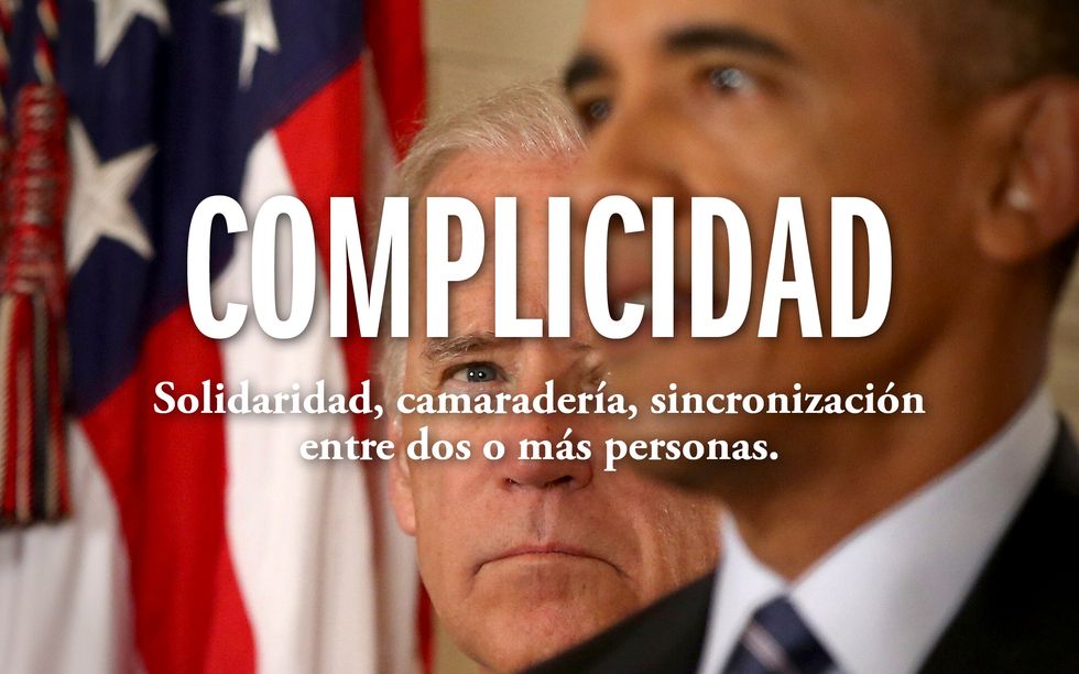 Proviene del latín complicitas, que podría traducirse como «asociación para cometer un crimen». Se compone de con «todo, junto», plexus «entrelazado» que también da «complejo». Se le añade el sufijo -dad «cualidad». Es, por tanto, la cualidad de estar entrelazados. Mantiene su origen delictivo y como tal aparece en la segunda acepción del DRAE: «participación en crimen o culpa imputable a dos o más personas». Aunque se utilice también en el sentido de camaradería, implica cierta intimidad . Si hay complicidad, hay una comprensión entre dos o más personas que escapa al resto del mundo.