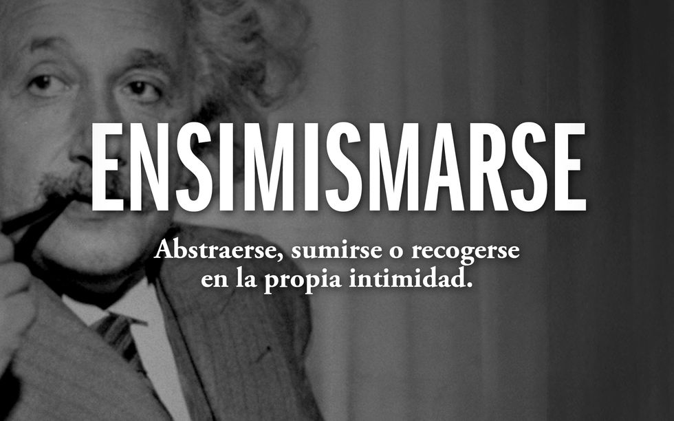 Viene, como es lógico, de «en sí mismo». De cuando te refugias en ti mismo, en tus pensamientos y te aíslas de todo lo que sucede a tu alrededor. No es un verbo defectivo, o sea, se conjuga en todos los tiempos y personas, pero sí que, en mi opinión, tiene un defecto. Si uno se ensimisma, centrado en sus pensamientos, ¿no tendría que ser «enmimismarme» cuando soy yo la que me abstraigo, o «entimismarte» cuando eres tú el que estás a lo tuyo? Bueno, dejaremos que la tercera persona sea la que cargue con todo el peso de los pensamientos de todas las demás.