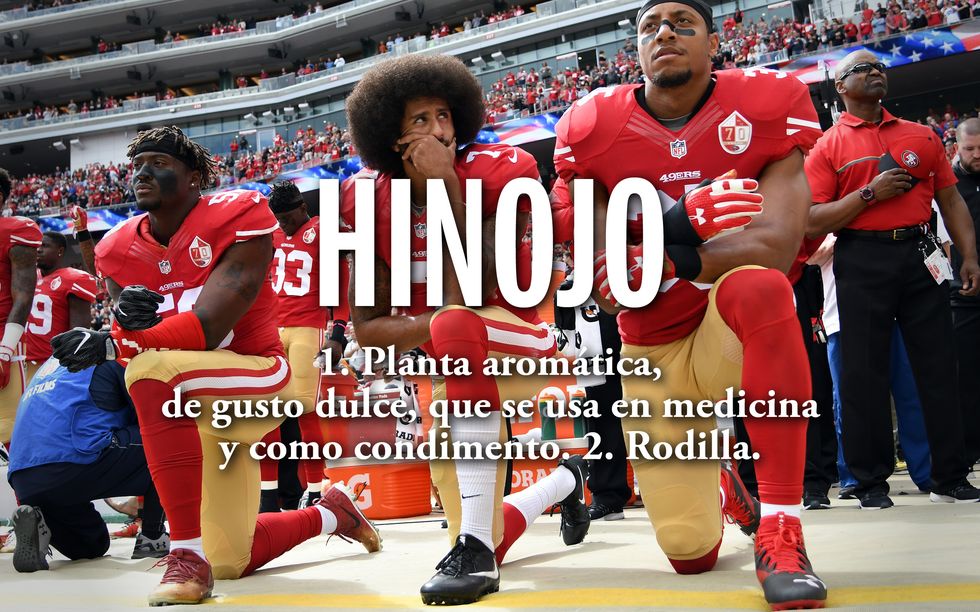 Colin Kaepernick se puso de hinojo, en singular, o sea, con una sola rodilla en el suelo, mientras sonaba el himno nacional en un partido de la NFL en 2016. Fue una bonita forma de protestar por la opresión que sufre «la gente negra y la gente de color (sic)» en Estados Unidos.