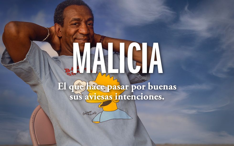 La palabra «malicioso» viene del latín malitiosus y significa «que es muy perjudicial o dañino». Tiene dos significados: «Se dice de la persona que asigna mala intención a dichos o hechos ajenos», o sea, al que piensa mal de otros. También se llama malicioso al que posee malicia, «el que hace pasar por buenas sus aviesas intenciones». Como «canalla» antes, en mi cabeza «malicioso», también tiene algo de villano de ficción. Si de niña no hubiera leído tanto, estas palabras no estarían en esta lista, pero no puedo evitar sentir una oleada de emoción romántica al escuchar esas palabras que me llevan a la infancia, no a mis vivencias, sino a las que devoraba en libros y películas.
