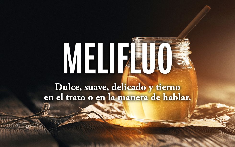 Dulce, suave, delicado y tierno en el trato o en la manera de hablar. Esa es su segunda acepción, la primera es más literal. «Que tiene miel o es parecido a ella en sus propiedades» y es literal porque proviene del latín mellifluus «que destila miel».