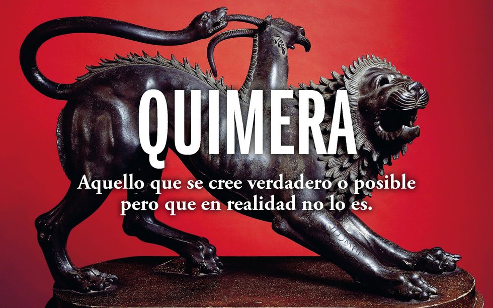 En la mitología griega, la khímaira era un monstruo con cabeza de león, cuerpo de cabra y cola de dragón que vomitaba llamas. Un ser cuya existencia muchos daban por verdadera, a pesar de ser imposible de concebir un bicho así. De ahí su significado derivado, el que ahora utilizamos para referirnos a sueños o ilusiones que son producto de la imaginación, que se anhelan o persiguen pese a ser muy improbable que se realicen. Hay otra acepción de «quimera», una persona que sufre quimerismo, una afección que tiene lugar cuando dos óvulos fecundados por diferentes espermatozoides, comparten gestación. En ocasiones uno de los cigotos absorbe al otro, así que técnicamente son dos personas en una, como es el caso de la cantante y modelo Taylor Muhl.
