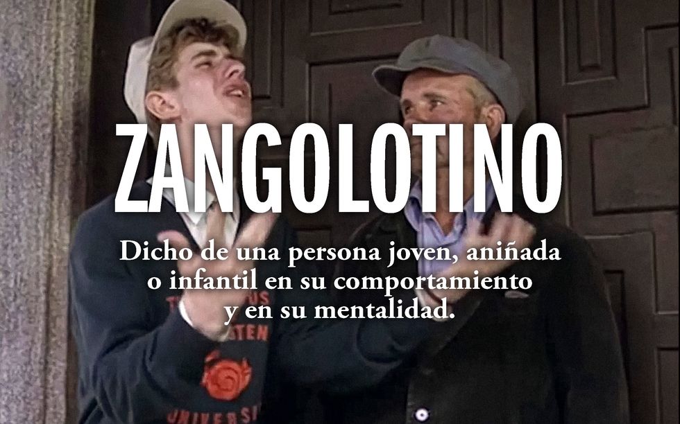 Me gusta mucho la entrada de María Moliner: «Muchacho que viste todavía, impropiamente, de niño o hace otras cosas propias de niño. Muchacho necio». La RAE señala que viene de zangolotear, que a su vez proviene de la onomatopeyazangl, del balanceo. Significa «Mover continua y violentamente algo o moverse de una parte a otra sin concierto ni propósito». Me gusta esta palabra, es sonora, divertida, bastante más amable que «zángano» que, según explica Joan Corominas, en su Breve Diccionario Etimológico de la Lengua Castellana: «Los derivados de «zángano», además de la noción de la holgazanería e inepcia propias de este insecto, expresan la visión de sus patas largas». De entre esos derivados destaca «zangolotino»:»Niño zangolotino. Muchacho piernilargo que quiere pasar por niño».