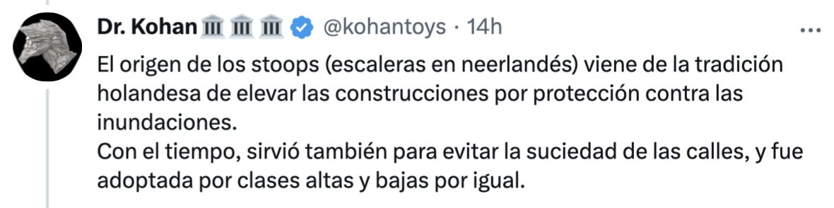 Las escaleras de entrada de Nueva York pueden haber sido un simple legado de la práctica holandesa de construir edificios elevados. Se ha documentado ampliamente que la escalera de entrada cumplía la función de mantener a las personas y sus hogares separados del estiércol de caballo, que se acumulaba en las calles a un ritmo elevado. Los caballos fueron el principal medio de transporte en Nueva York durante décadas, y los ciudadanos comunes tenían miles de ellos en la ciudad.