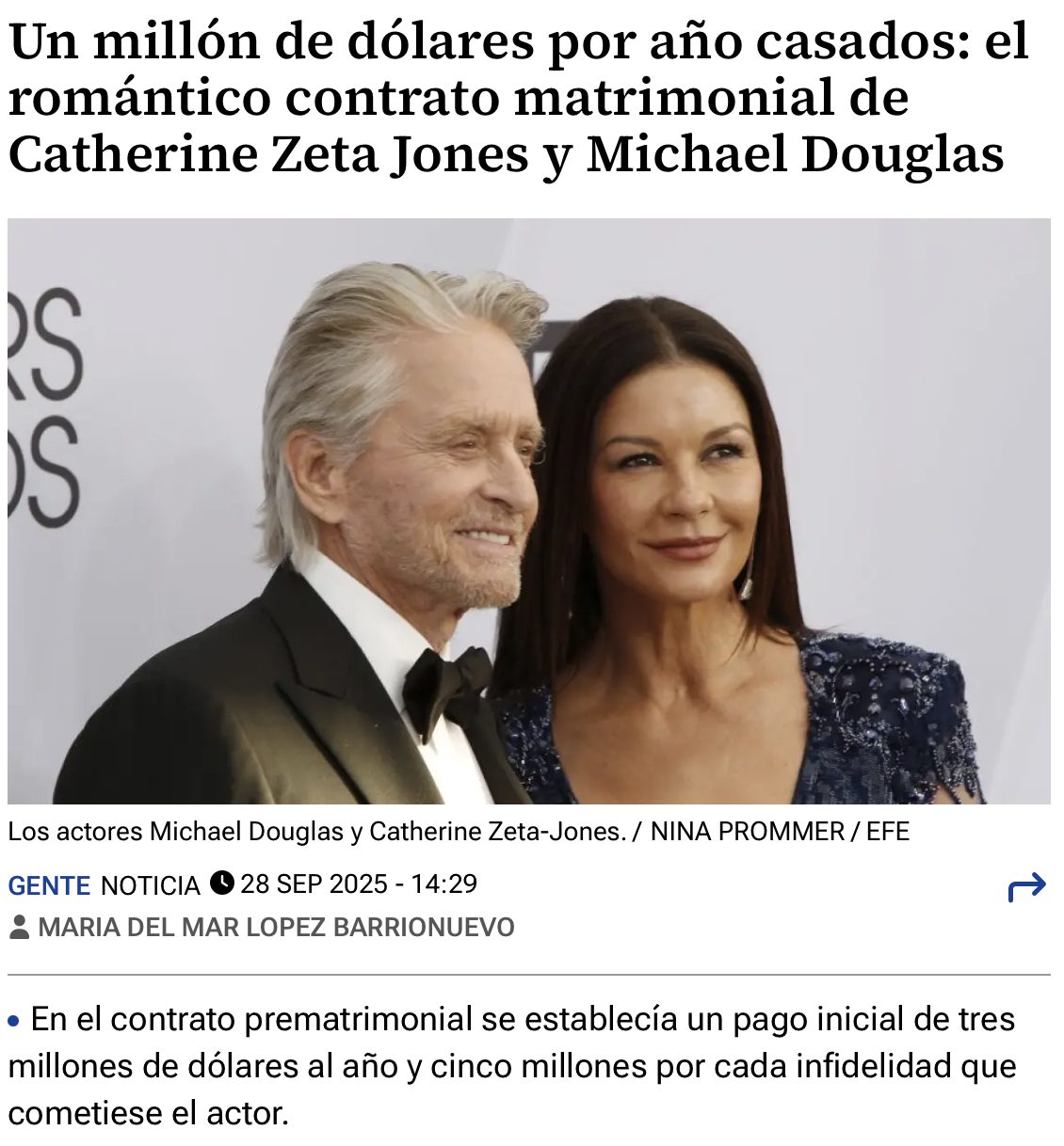 Las cláusulas de Catherine Zeta Jones y Michael Douglas