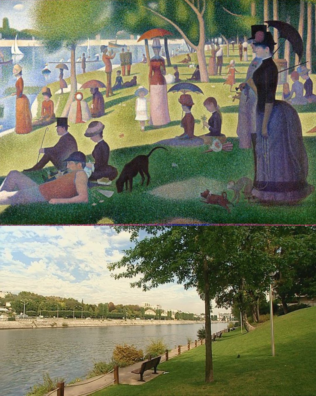 Una tarde de domingo en la isla de La Grande Jatte de Georges Seurat – Île de la Jatte, Francia