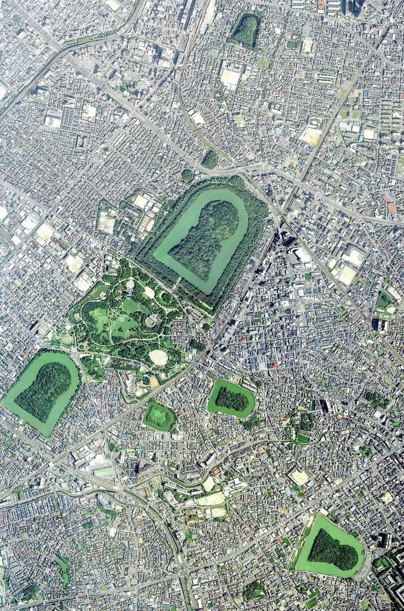 Las tumbas japonesas de Mozu en Sakai con forma de ojo de cerradura, conocidas como kofu, construidas para los antiguos emperadores.