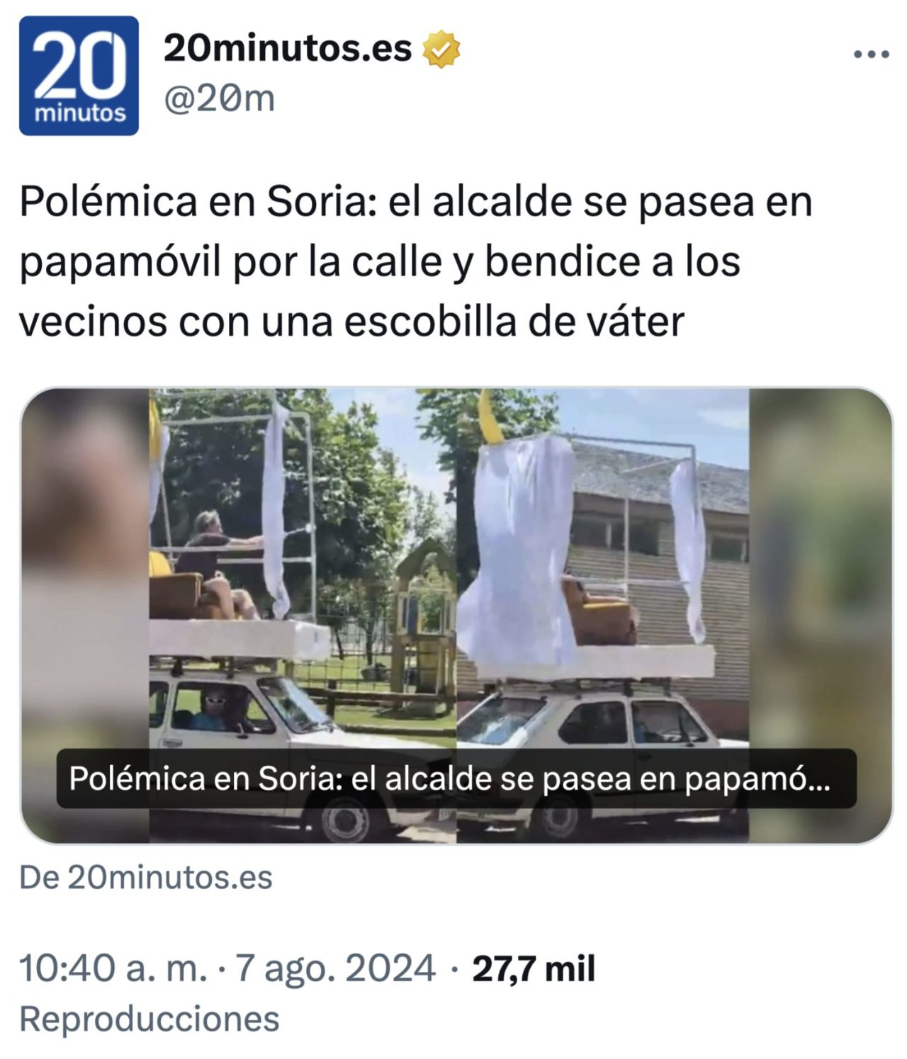 El alcalde de Soria en Papa Móvil y bendiciendo al personal con una escobilla de wáter. Es lo que tiene gobernar 4 legistaturas seguidas, que te crees que todo vale, pero no.@sextaNoticias pic.twitter.com/ieFSDgwxlM