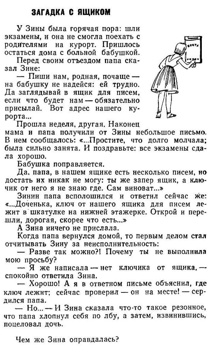 Sí, papá, hay algunas cartas en nuestro buzón, pero no puedo sacarlas: cerraste el buzón y no sé dónde está la llave. Es culpa tuya…».