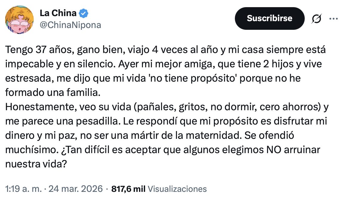 Qué pesaos con la competición de si tener hijos es lo correcto o no, que cada uno haga lo que quiera con su vida