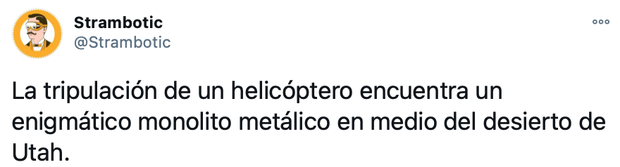 La epopeya de ciencia ficción vuelve a las noticias después de que miembros de la tripulación del Departamento de Seguridad Pública de Utah descubrieran un monolito de plata en el desierto de Utah. El objeto mide entre 3 y 4 metros de altura, y su ubicación exacta se mantiene en secreto para evitar que la gente viajara al desierto. | @strambotic