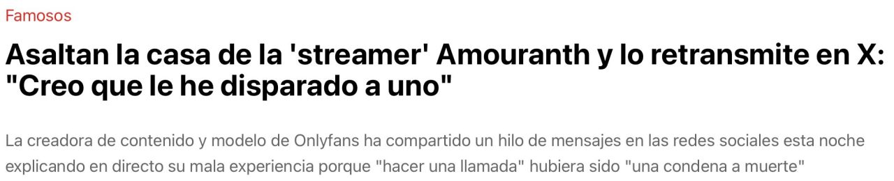 Respecto al atraco, Amouranth escribía poco después que había disparado a uno de los asaltantes, de nuevo a través de la red social propiedad de Elon Musk: «Creo que he disparado a uno de ellos, querían mis criptomonedas«, comenta antes de explicar que le habían levantado de la cama a gritos.