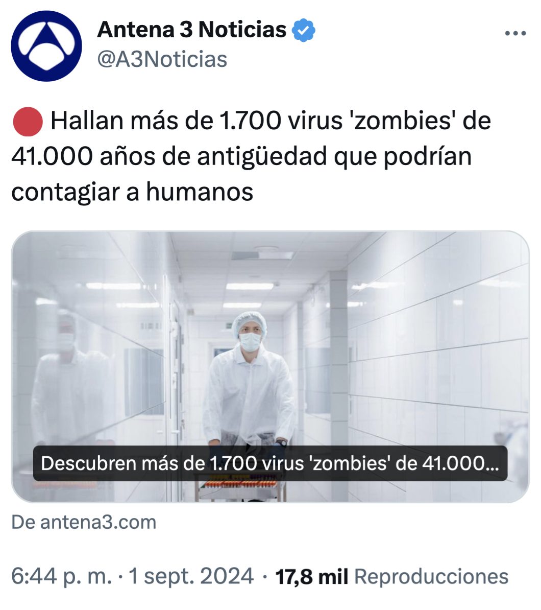 Vuestra noticia apocalíptica del día @antena3 noticiasvirus No hay comentarios random 1 septiembre, 2024
