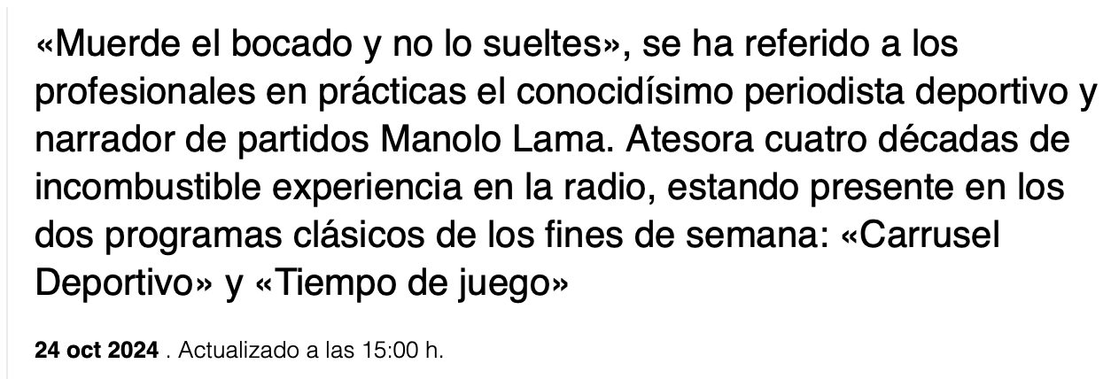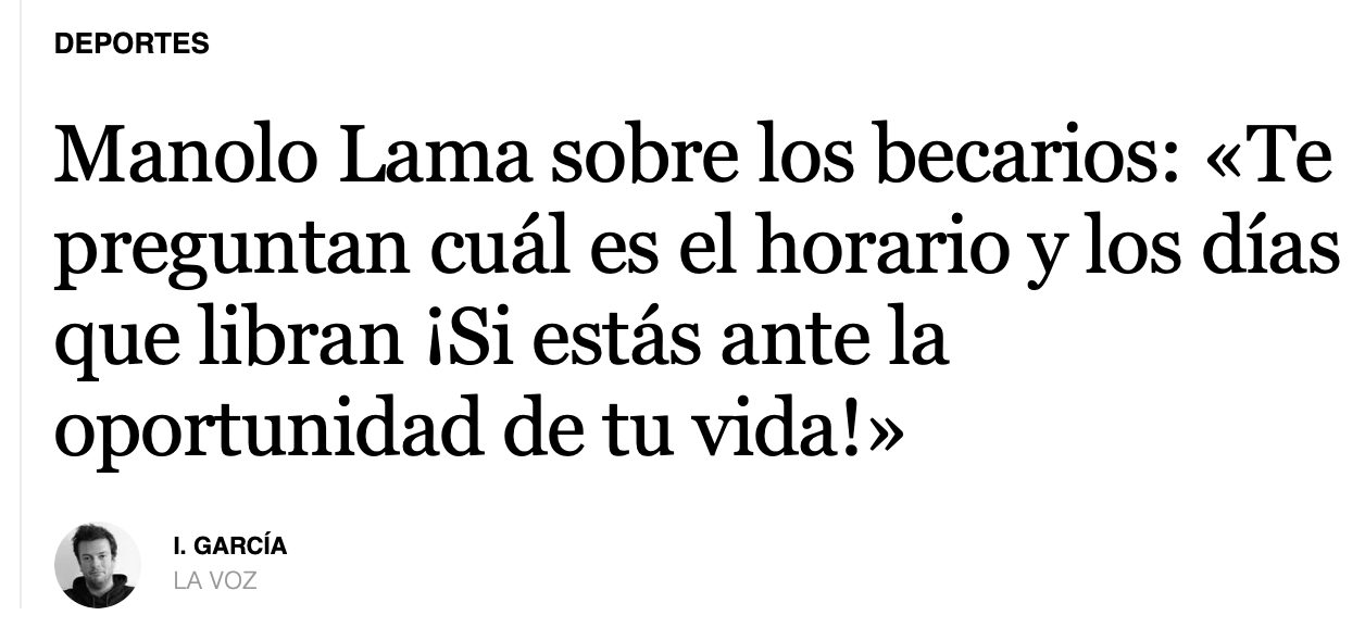 Este relato le dio entonces pie al creador de contenido coruñés para preguntar al narrador deportivo sobre los profesionales que inician su carrera ahora. Fidalgo introdujo el tema recordando que en otra entrevista en su pódcast con el periodista de investigación Manu Marlaska, este señalaba que las nuevas generaciones eran «menos proactivas» y tenían «menos ganas» que «en tiempos pretéritos». «Yo les zurro mucho a los becarios porque me parece inexplicable que te den una oportunidad y no mates por ella. Cuando llegan a la redacción, te preguntan, no todos, pero muchos, qué van a cobrar, cuál es su horario y qué días libran. Es para matarlos. ¿Qué haces? ¡Si estás ante la oportunidad de tu vida! Muerde el bocado como un león y no lo sueltes bajo ningún concepto», aseguró la voz también del videojuego FIFA entre los años 1997 y 2023. | @lavozdegalicia