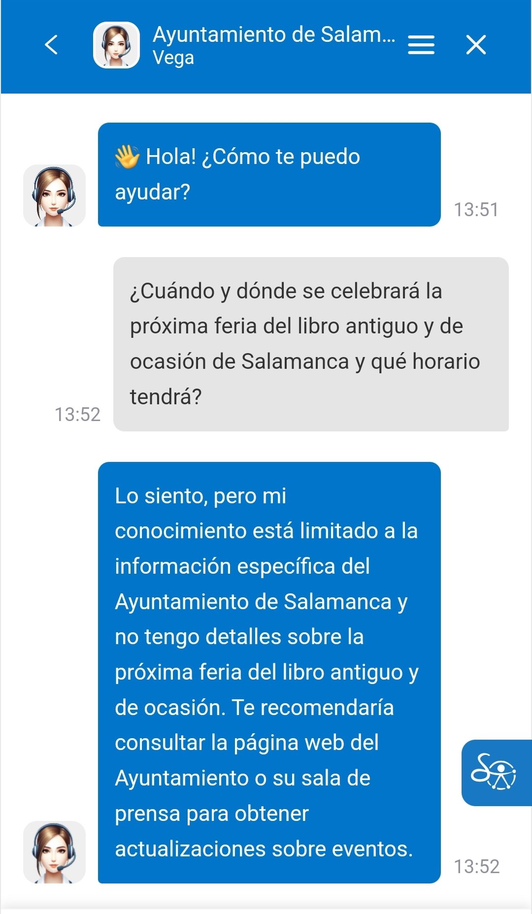 Por último, esta web también contará con Inteligencia Artificial, que incorporará un‘chatbot’ llamado ‘Vega’ para ofrecer «resultados más precisos y específicos». Se puede hablar e interactuar planteándole preguntas y sugerencias. | @salamanca24horas