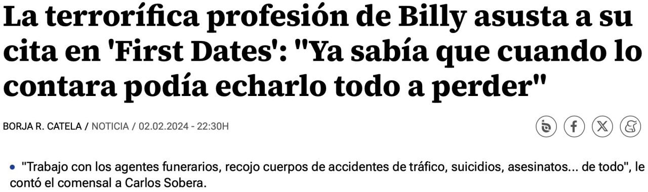 Su cita fue Billy, un chico de Marbella con una profesión un tanto singular a la par que tétrica: «Trabajo con los agentes funerarios, recojo cuerpos de accidentes de tráfico, suicidios, asesinatos… de todo. Maquillo, visto y transporto a los difuntos«, explicó. | @20m