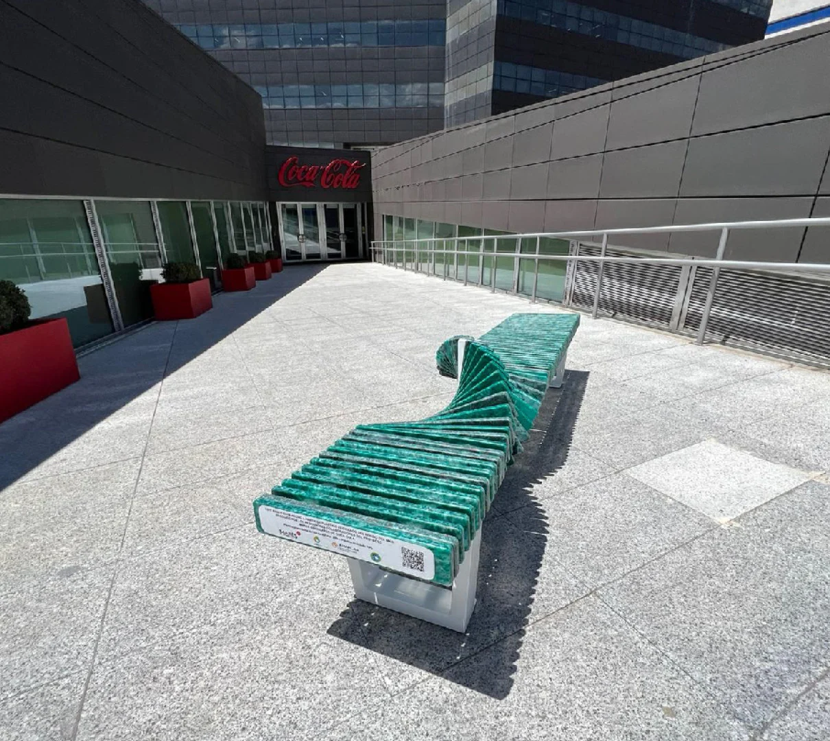 Esta obra me ha recordado a un banco que vimos ayer en Santoña. No se ve porque está mi hijo sentado encima, pero tiene la misma forma. Y está hecho a partir de plástico reciclado del fondo del mar.