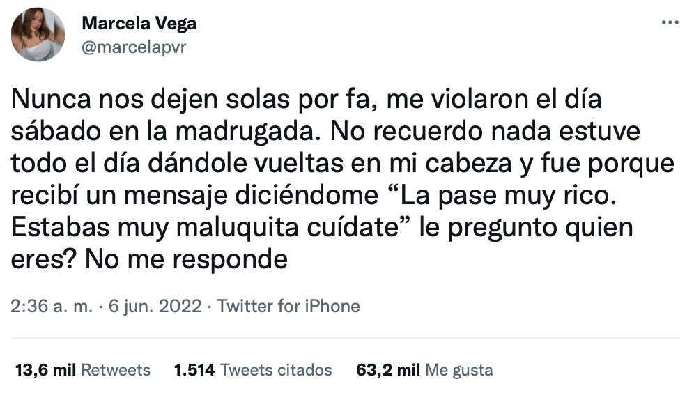 Yo para estas cosas soy una cagona, NUNCA vuelvo de noche sola a mi casa y menos bebida. Siempre o me recogen o taxi, y alguna vez en bici he vuelto xdxd. @marcelapvr twitter No hay comentarios random 6 junio, 2022