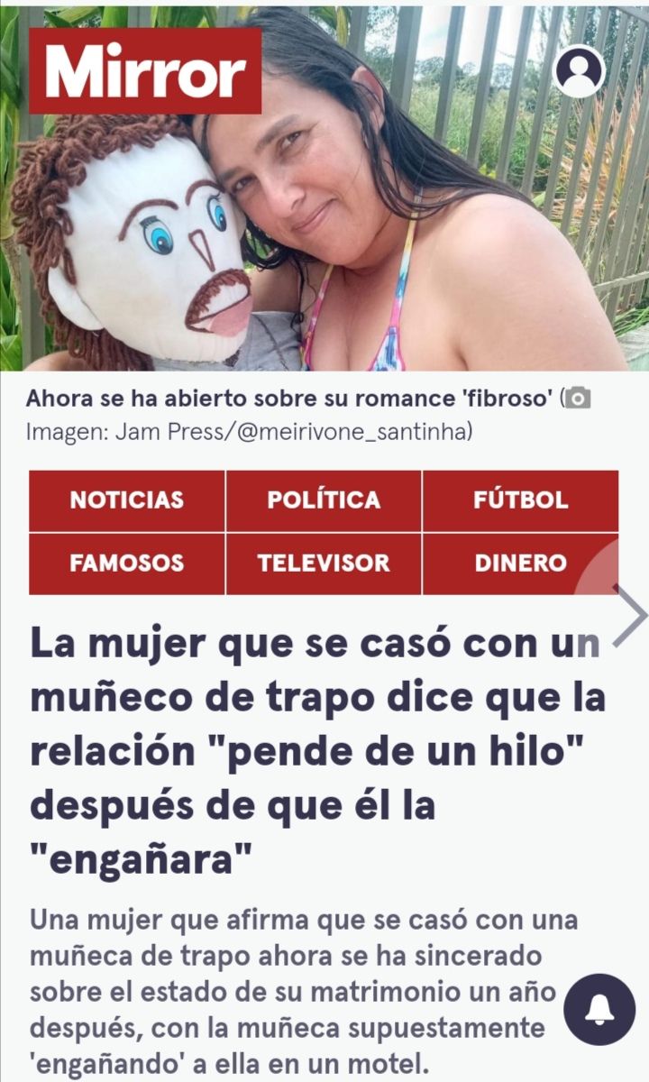 Meirivone Rocha Moraes, de 37 años, estaba lista para celebrar su primer aniversario con el muñeco de trapo Marcelo, pero se quedó con el corazón roto después de que un amigo lo vio colarse en un motel con otra mujer.