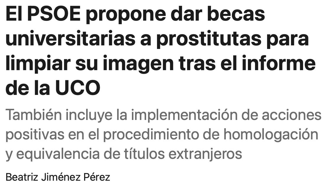 Según el propio Ministerio de Igualdad, la explotación sexual está íntimamente ligada a la prostitución.“La trata con fines de explotación sexual existe o es consecuencia de la prostitución”, recoge el organismo encabezado por Ana Redondo. De esta forma, la proposición del PSOE beneficiaría directamente a este colectivo, en una maniobra por blanquear su imagen tras el escándalo, sobre todo después de que uno de los informes de la UCO recogiese que Ábalos pago la matricula universitaria a Jessica, una de sus “amigas”. | @vozpopuli