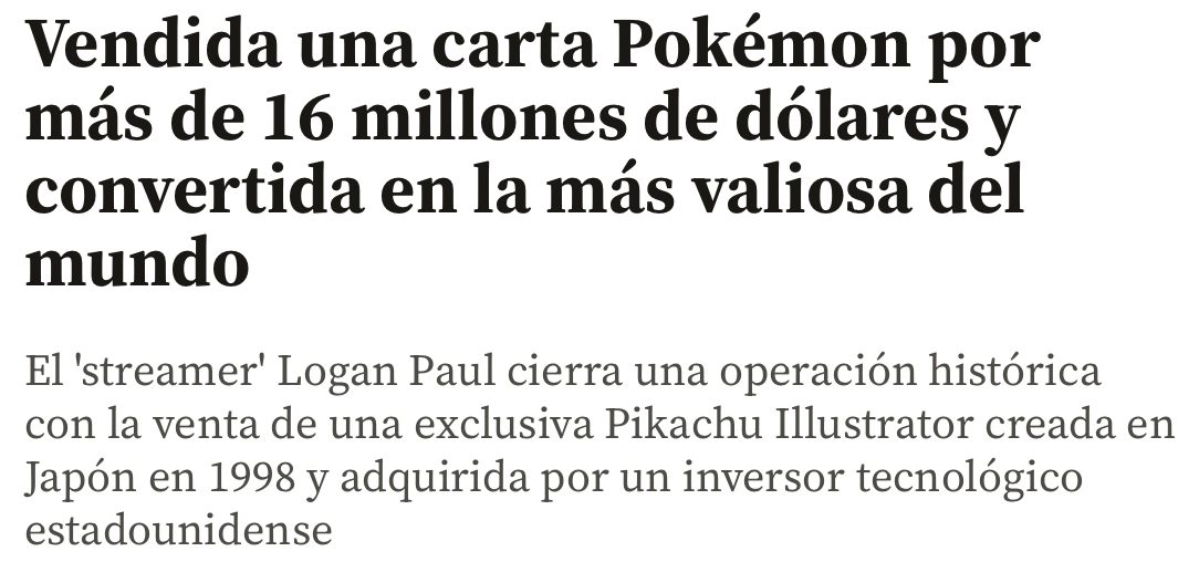La transacción marca un incremento extraordinario respecto a los 5 millones de dólares que Paul pagó por la misma pieza en 2021. Durante la retransmisión, que atrajo a miles de espectadores simultáneos, el creador de contenido también procedió a abrir cajas antiguas de cartas Pokémon valoradas en 1,5 millones de dólares (unos 1,38 millones de euros). «Anoche fue una noche que recordaré para siempre», declaró Paul en sus redes sociales tras completar la venta, añadiendo que se trataba de «uno de los momentos más destacados» de su vida.
