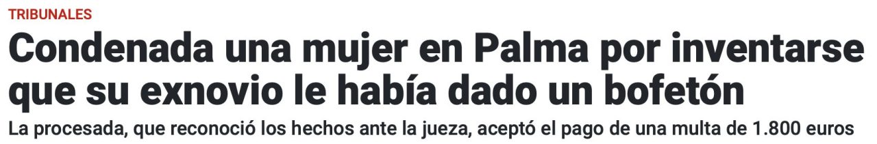 Dicha acusación acabó en un juzgado de Violencia de Género de Palma, donde se incoaron diligencias previas contra el hombre. Pero todo acabó rápido. El por aquel entonces sospechoso aportó en el juzgado unos mensajes que la expareja le envió y en los que le exigía el pago de 2.000 euros a cambio de retirar la denuncia, que reconoció que era falsa. Poco después la mujer acabó imputada por acusación y denuncia falsa. El asunto acabó este miércoles con una condena de 1.800 euros. La jueza dictó sentencia en el mismo acto. | @ultimahora